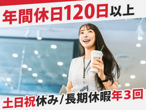 | 休日 | *完全週休2日(土曜・日曜) *祝日休み *長期休暇(GW・夏季・年末年始) *年次有給休暇(入社6ヶ月後付与) 【年間休日120日以上!】 土日休みで予定が立てやすく、 プライベートとの両立も可能です! |